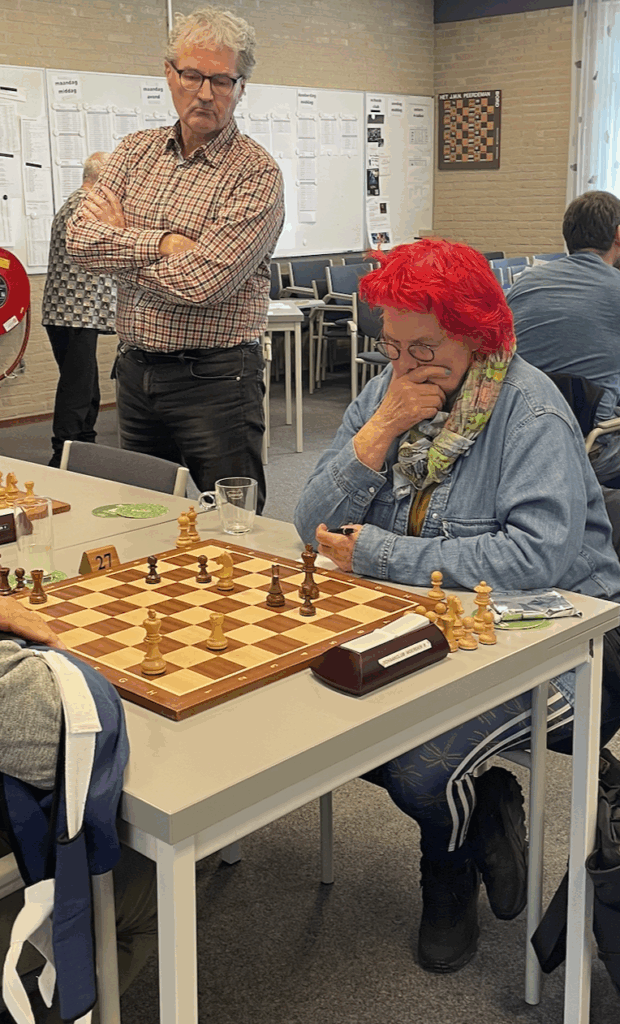 Jean, met wit aan bord vier, had na zo’n 30 zetten een ingewikkelde, maar nog steeds gelijke stelling. De klok begon wel een rol te spelen. Hij overzag dat zijn ongedekte pion met schaak geslagen kon worden waarna zijn tegenstander mat in vier kon geven. Ontgoocheld gaf Jean op.