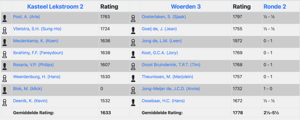 De tweede ronde van de KNSB-competitie speelde Woerden 3 tegen Kasteel Lekstroom 2. De wedstrijdleider waarschuwde dat het wat lawaaierig zou kunnen zijn, de eerste tijd. Dat klopte: de Mobiele Fietsenmaker Aan Huis die in de speelzaal zijn werk deed, repareerde op rumoerige wijze het ene rijwiel na het andere.