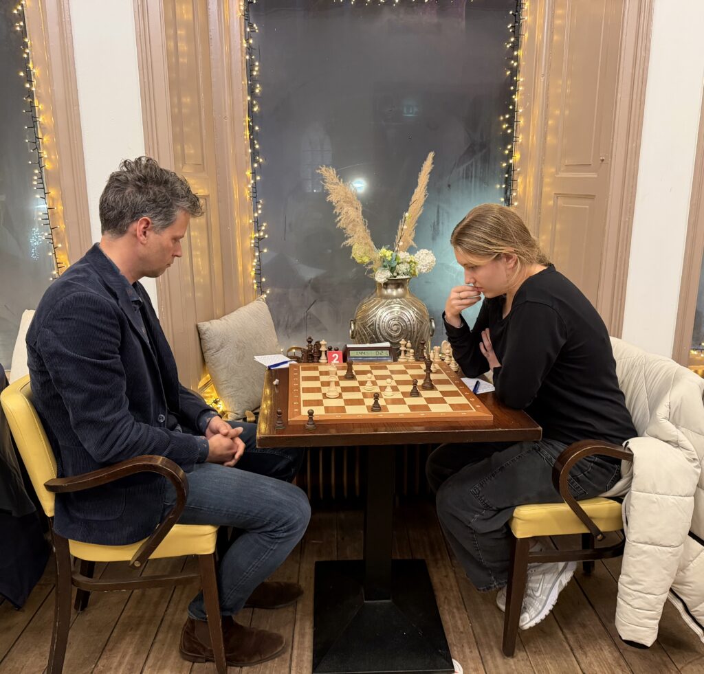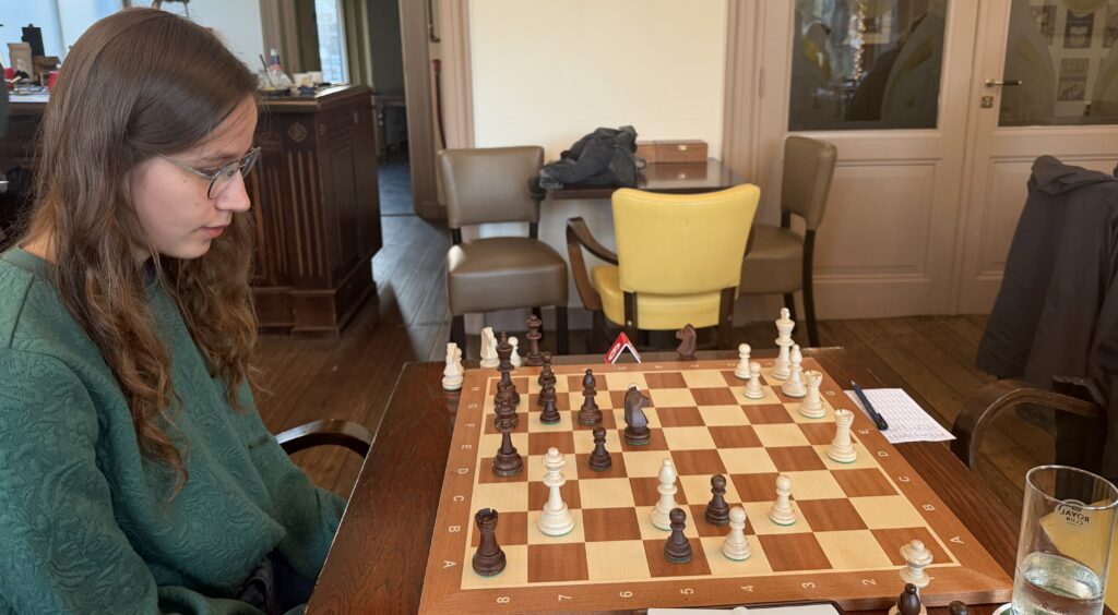 Sofia Moskalets was tegen Richard Berendsen snel terecht gekomen in een stelling met een isolani die aardig goed onder controle werd gehouden door haar tegenstander. Sofia had geen problemen met haar stukken, dat dient gezegd te worden, maar toch waren de omstanders er niet helemaal gerust op. Dat veranderde toen Richard, in de war gebracht door het handige stukkenspel van Sofia, een kwaliteit tegen een pion moest opgeven. Een eindspel van een loper plus drie pionnen tegen een toren plus twee volgde. De grote troef van Sofia was haar vrije h-pion, die uiteindelijke de partij besliste.